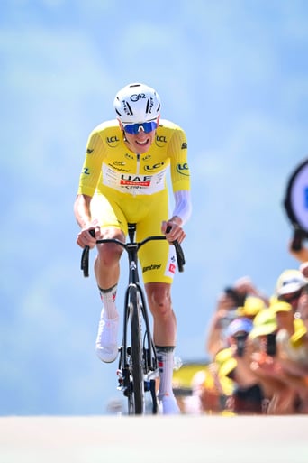 Für euch haben wir mal durchgerechnet, wie viel Zeit Pogačar auf dem 19-Minütigen Schlussanstieg hinauf nach Peyragudes eingespart hat. Die Schlusssteigung war 7.8 Km lang mit einer durchschnittlichen Steigung von 7.9%. Dafür brauchte er gut 19 Minuten und leistete dafür im Schnitt etwa 470 Watt = 7.1 Watt / Kg. Ein ganz akzeptabler 20min Test also #lol. Wenn man davon ausgeht, dass die Aerodynamik & Rollwiderstand gleich war, gewann er dadurch 5 Sekunden.